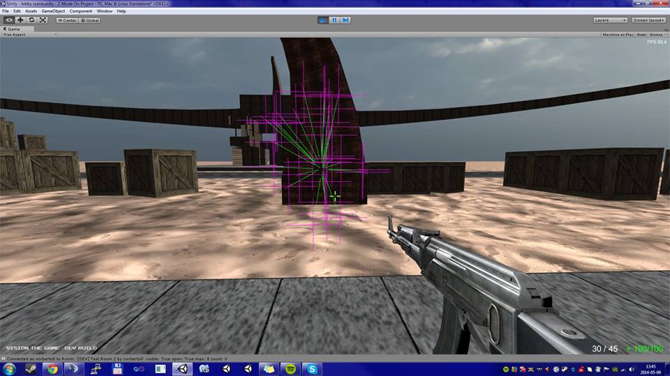 Gra typu First Person Shooter tworzona na silniku Unity 3D. Vision The Game (Link do fanpage'a na facebooku).Gra miała być typowym survivalem, w którym musimy znajdować przedmioty, aby przeżyć. Gracze mieli toczyć rozgrywkę na wielkiej mapie z kilkudziesięcioma innymi graczami.Niestety prace nad grą przerwałem ponieważ na ogrom planów zabrakło mi wsparcia grafików i designerów. Prace nad projektem wstrzymałem po zaimplementowaniu MasterServera wraz z API, które pozwalało na rejestrację, logowanie, administrację nad kontami z poziomu gry i webpanelu, a także: część networkingu odpowiedzialna za czat, synchronizację graczy, poruszanie postaci itd.; serwer dedykowany dla rozgrywki; podstawową fizykę pocisków, graczy, a także logikę gry.